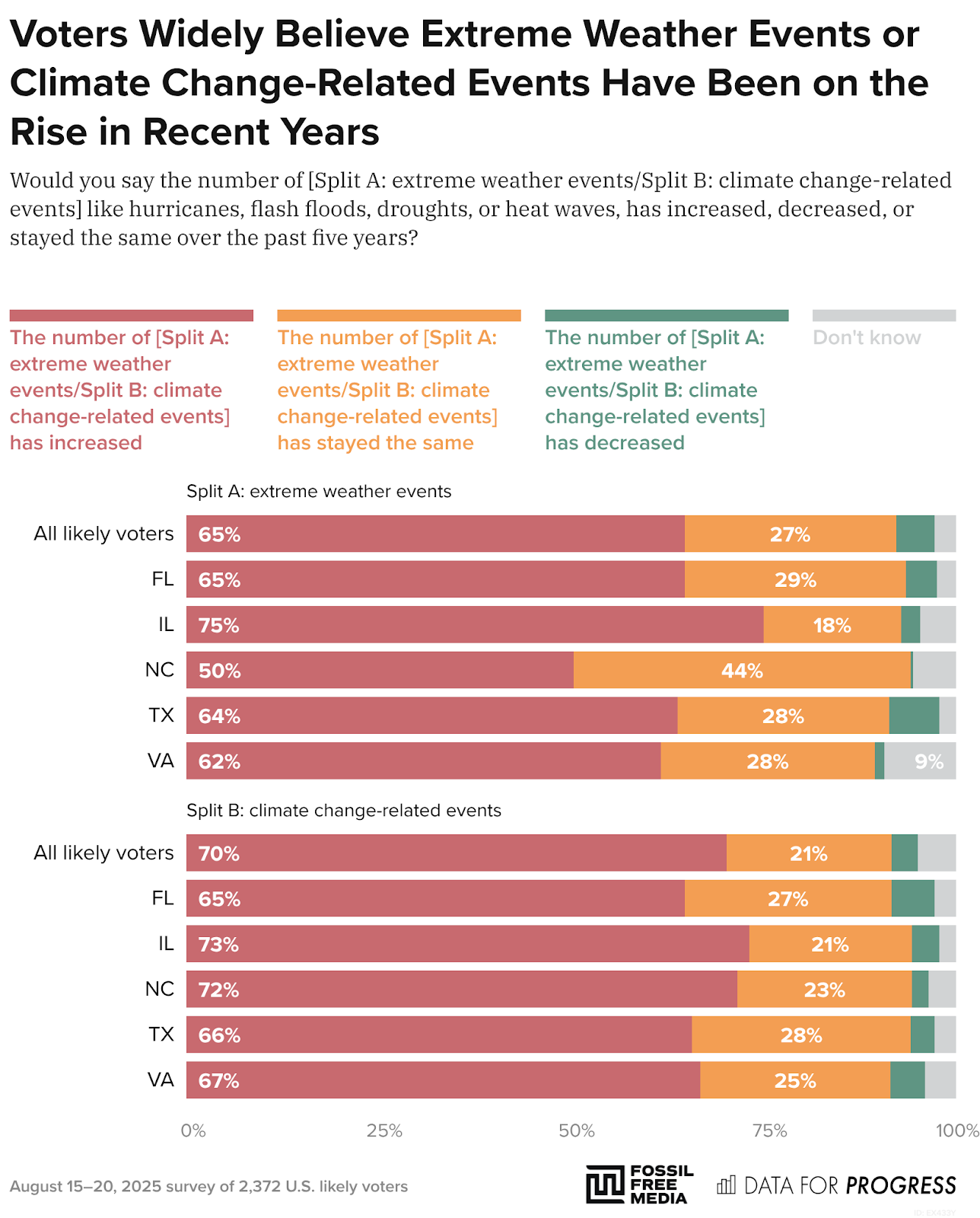 Most believe these events are becoming more frequent. Voters are especially concerned about rising insurance rates, with many expecting climate change to impact everyday costs like utilities and groceries.